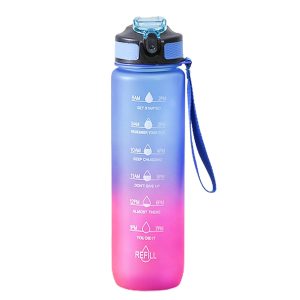 33.8Oz Plastic Time Mark Water Bottle W/ Lanyard