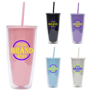 25.4 Oz Double-Layer Plastic Straw Cup W/ Lid