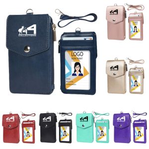 Leather Zipper Badge Holder W/ Lanyard