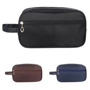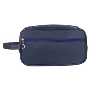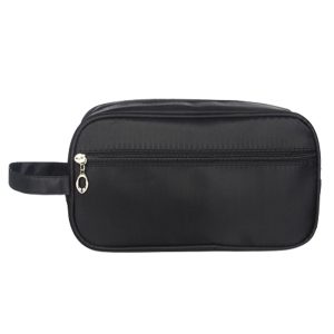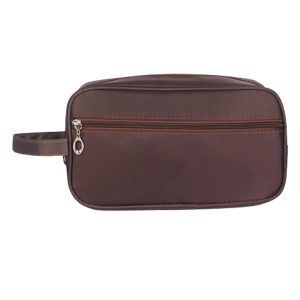It’s made of nylon. It’s perfect for make-up and cosmetics, change, school supplies, pens and pencils, or anything else. It’s usually more business for men. The name of your company can be customized.