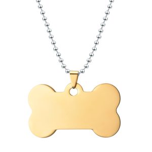The product is made of stainless steel, corrosion-resistant and wear-resistant. Blank bone shape pet ID tag is more cute. The LOGO printed with your company name can be customized. Suitable for making necklaces, the chain length is 23.62″.