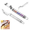 The stainless steel julienne peeler’s handle is ergonomically designed for easy grip to prevent scratching and scratching. The comfortable non-slip handles provide a film grip even in wet or greasy conditions. The soft coating reduces hand pressure, so you don’t feel tired when peeling. For creating easily thin sticks, suitable for cucumber, carrot, etc.