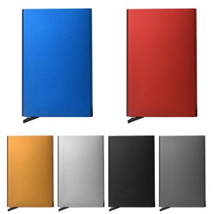 Card Case Front Pocket Anti-theft-RFID auto pop up is made of premium aviation aluminum. It can hold about 6 cards and make sure not to overload it. You can push up the bottom button and the card auto pop up automatically. It no more digging through your wallet to find the card you were looking for, push up button gives easy access to cards. It has advanced RFID blocking technology protect your personal identity information from RFID scanning and electronic pick your pocket.