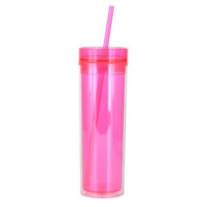 Tumblers with their double walls, thermo-regulate your drinks, so you can enjoy them down to the last refreshing drop. Thanks to their straight sides, each tumbler is the perfect shape to emblazon with meaningful designs. The logos, club names, and promotional brands are just some of the ways these acrylic tumblers have been adorned. Tumblers come with colored screw top lids with tight straw seal. Many people agree skinny tumblers are the most comfortable size to hold.