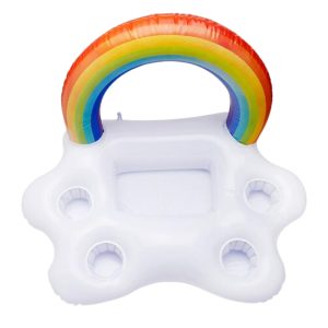 The rainbow & cloud design pool floats with drink holder has 4 storage holes that is suitable for cans, beer bottles, beverage cups, it also can be used a floating ice bucket to keep your drinks cold, as well as a serving tray that can fit your fruits, food plate, phone, and other personal effects. Our pool cooler is made of premium quality thick and soft PVC material. It is suitable for pool decorations outdoor, summer accessories photoshoots, beach and rivers.