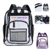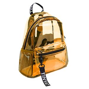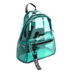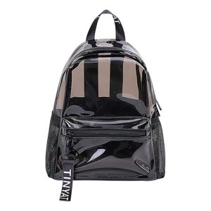 The bag is perfectly see through. It is perfect plastic backpack for toting to swim classes & to the pool or ocean side. The sand rinses right off. You’ll always be able to see where you tucked your flippers, sandals, goggles, book, & sunscreen!Roomy main compartment fits pens, pencils, crayons, water bottles, homework papers. Front zip pocket is great for keys, cellphone, cash, school IDs, & ticket stubs!
