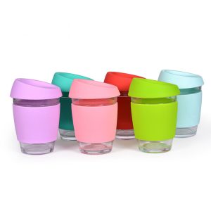 The reusable travel cup is crafted from high quality glass and heat resistant silicone. The press fit lid has been engineered for an anti-splash experience, allowing you to drink your hot beverage in style. The ergonomic nose dome enhances usability allowing for more comfortable drinking.