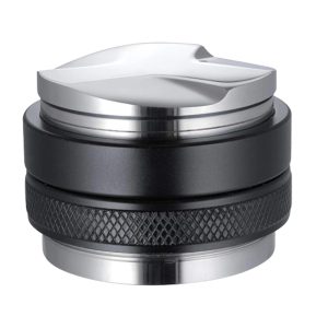 It is made of stainless steel base, anti-slip aluminum alloy handle construction. Height is easily adjustable by its screw mechanism. You can set desired tamping depth for consistent tamping pressure every time. Low profile makes it easier for barista to tamp with straight arm at 90 degrees to the counter. It can even redistribute coffee grounds and provide a larger flat surface area for the barista to apply an even tamping pressure.