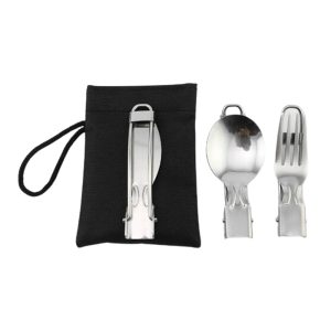 The flatware set contains spoon, fork, and knife all in, one set could satisfy all your needs with less cost. It is made of sturdy 304 stainless steel, cheaper than titanium ones and solid than the aluminum ones. The foldable design with with a compact nylon pouch for storage, portable and save space. It is ideal for outdoor activities as camping trips, family picnic, BBQ and also indoor dining.