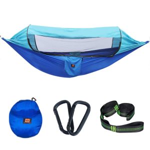 The net has 2 detachable hammock poles and two double-sided zippers with the net, so you can zip it easily inside or outside. There is also a small net bag in the hammock which you can store your belongings, like keys, phone, wallet, etc. Soft 70D nylon taffta fabric which is very durable, soft and comfortably and safely support up to 400 lbs. Hammock is 114″ L x 55″ W. The net is attached to hammock and the size fits hammock prefectly.