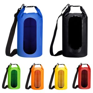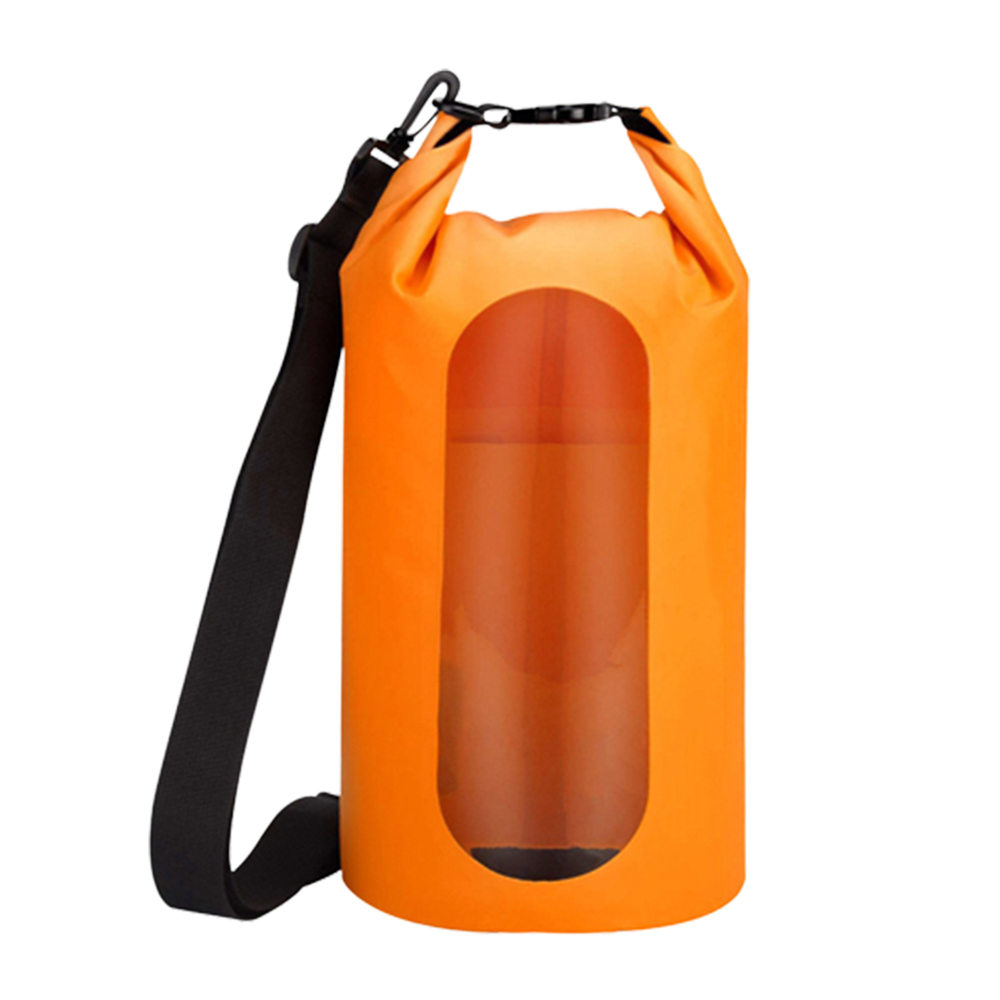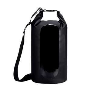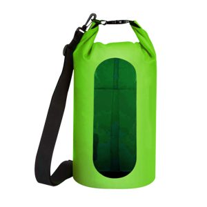 The waterproof dry bag is made by wear-resistant PVC mesh waterproof material and it has a transparent window. You can easily find your stuff located in without rummaging through the dry bag. The dry bag has a large main compartment with roll-top closure. You just toss your gear inside and fold down 3-4 times. There are adjustable shoulder straps and handle. The bag is very adaptable for different outdoor activities like beach, boating, rafting, swimming. The capacity of 3.96 gallon is enough to hold what you want.