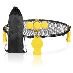 This new 2 vs 2 volleyball style game is fun and addictive. Whether you are a volleyball fan or not, you will definitely like this derivative spike game. It is easy for the joints and simple to learn. The set is easy to assemble and store and includes a convenient storage bag for transporting from place to place! Our robust, tough ring-net won’t wobble or collapse, and the properly tensioned netting delivers super explosive rebounds with no game destroying pocket shots.