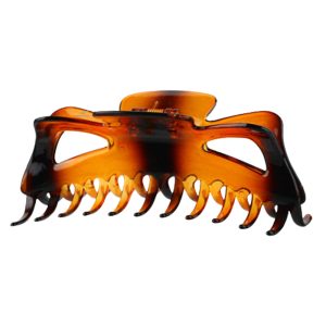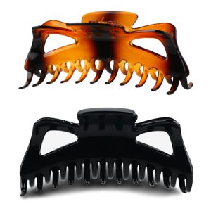 It is made of plastic resin, strong and durable material makes them much pretty and exquisite. It is perfect for thick, thin, curly, or straight hair. Teeth design can greatly handle whatever thick or thin hair. Enough long clips for hair will hold tightly.