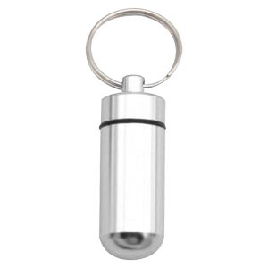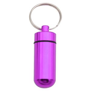Portable pill case is used for protecting pills and drugs inside from getting wet. The pill cases are made of Aluminum, durable and sturdy, having being well-finished. It is a perfect size for travel, outdoor use or emergency situations. The pill holder is perfectly suitable for fishing trips, bike riding and camping. The holder comes with a keyring, thus they can be clipped easily to handbags, key chains, belt loops, golf bags or used as a zipper pull for your coat or jacket.