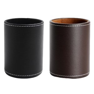PU leather round pencil holder stationery organizer features: Made of high density wood and PU leather, durable pens, markers, pencils, letter opener, scissors and more are organized in this stylish pen holder, perfect for effectively placing pens / pencils / stationery and clearing away clutter on your desk.
