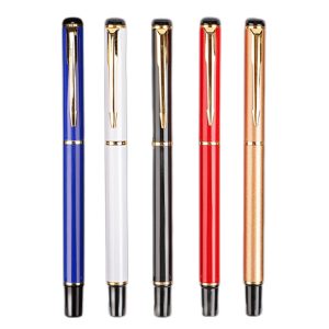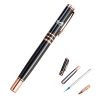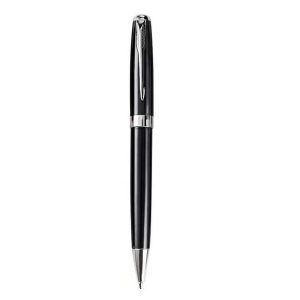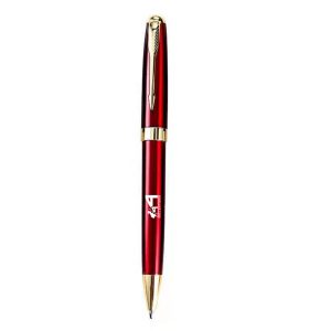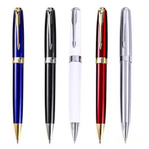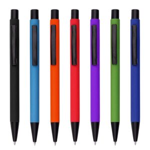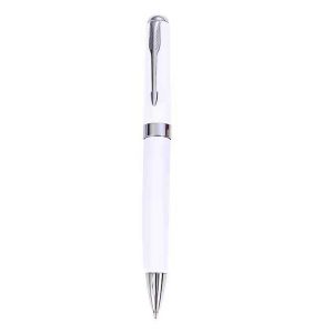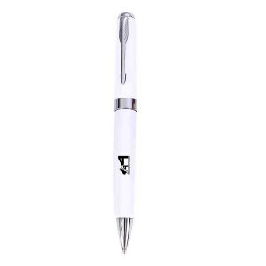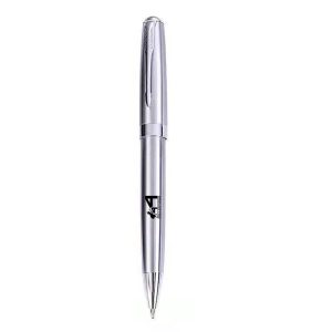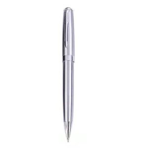 Ballpoint pen with twist-action has a sleek, shiny metal body, color matching metal grip, metal clip, chrome trims, and a capacitive stylus, attractive looking and nice outside.