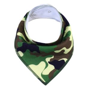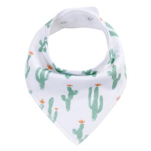 Baby drool triangle is made of 100% soft organic cotton on the front and 100% super absorbent soft polyester fleece on the back. Double rows of snap closures with three adjustable positions.