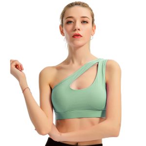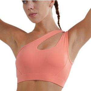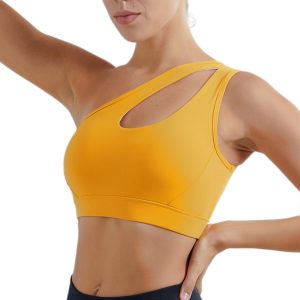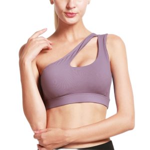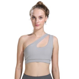 This Sports bra made with lightweight, moisture-wicking power fabric, Nylon 88% + Spandex 12%, High elasticity, Comfortable, Breathable. With removable pads for convenient adjustment, soft and comfortable to wear. For yoga, exercise, fitness, any type of workout, or everyday use. Remedy Yoga bra combine fashion, function and performance One Shoulder Hollow Design makes quit unique from most of other Yoga Bra. Size: S/M/L/XL/XXL Logo can be customize.