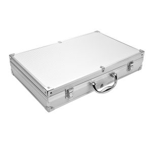 The stainless steel grill tool includes a baking clip, a baking spatula, a baking knife, an oil brush and a multi-purpose fork. It comes in an aluminum outer case.