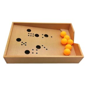 This children’s educational blow box is made of wooden, there are six balls, and the inverted triangle gap is the blowing mouth. Suitable for kindergarten children.