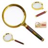 This Double-lens Led Magnifying Glass is made of ABS, acrylic and glass. There are two lenses, the large lens has a magnification of 3x and the small lens has a magnification of 45x, comes with LED lights and is powered by three No.7 batteries (batteries not included).