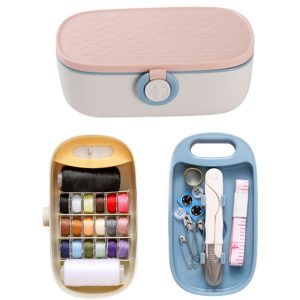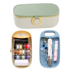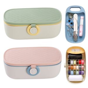 The product has a double-layer design. The upper layer has common tools such as scissors and sewing needles, and the lower layer is tools such as sewing thread.