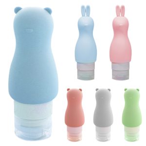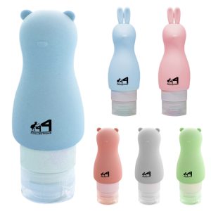 Small animal shape dispensers are made of silicone and plastic. The opening is large, the opening of the cap is small. It is available in bear and rabbit styles. The capacity is about 3.04 oz. Suitable for shampoo, shower gel, hand soap, etc.