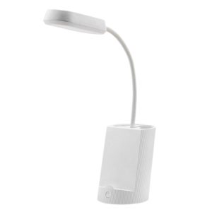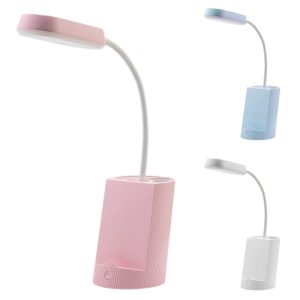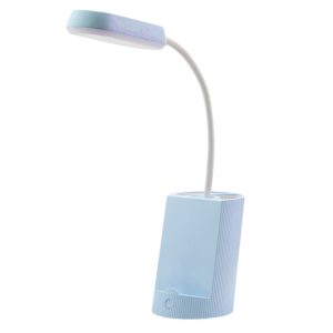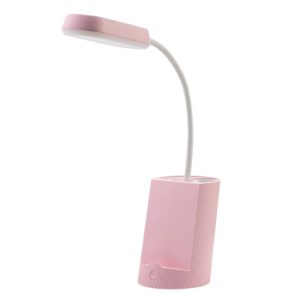 This Multifunctional Student Desk Lamp is made of ABS and PP, and the bottom is also designed with a pen holder and a cell phone holder. The light has two temperature levels and three color temperatures to protect your eyes, and long press the switch to open the infinitely adjustable mode. The light arm is made of copper and silicone, and can be adjusted 360 degrees. The top of the pen holder is also designed with a USB port, so the lamp can be used as a rechargeable battery.