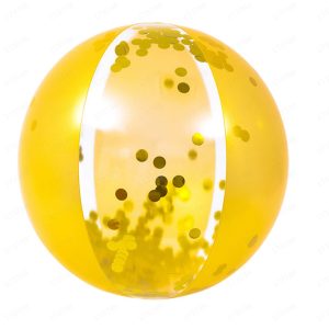 Inflatable sequins transparent ball of made of PVC. The gold inflatable ball is filled with sequins and has a diameter of 15.75 inches after inflation. It is also lightweight and compact, when you release the gas in the sequin beach ball, it will not take up too much space, making it convenient to store. The glittery beach balls are also nice decorations for under-the-sea themed parties.