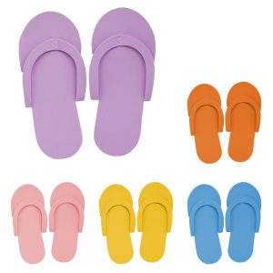The Disposable Slippers are made of EVA foam material with a thickness of about 3mm, and it adopts sewing line design and assembly design respectively.