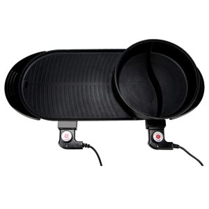 This Yuanyang Shabu Baking Hot Pot features a 2200W dual heat pipe, which provides high power and fast heating, and the surface of the frying pan is a convex structure with strips, so the ingredients do not stick to the pan. It has two modes: hot pot and grill. The bottom has a grease tray with two independent socket designs. Five levels of fire, with overheating protection.