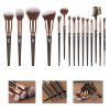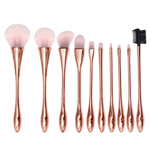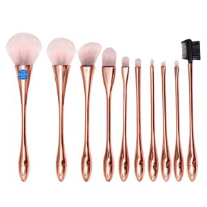 This makeup brush set is made of nylon filament fiber bristles and ABS plated bristles. It includes a powder brush, blush brush, contour brush, foundation brush, eye shadow brush, small eye shadow brush, angled brow brush, nose shadow brush, lip brush and dual purpose brow comb. The packaging is an opp bag.