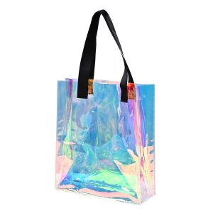 The stunning hologram tote bag features a mesmerizing rainbow hue that not only adds a touch of beauty but also discreetly conceals your personal items while keeping them easily visible. Its transparent design allows for quick and effortless inspection of your belongings, making it ideal for professions that mandate see-through bags or require passing through security checkpoints with ease.