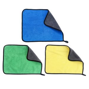 The double-sided padded cleaning towel is made of 80% polyester and 20% polyamide fiber, and it is equipped with a hook design.