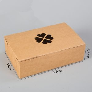 Indulge in your favorite fried treats with our premium Kraft Paper Fried Chicken Box, measuring 8.66×5.51×2.56 inches. Crafted from high-quality food-grade kraft paper, this box is both greaseproof and waterproof. Featuring a convenient snap-on side and a charming four-leaf clover pattern hollow design, this container is ideal for burgers, fried chicken, popcorn chicken, chicken nuggets, fries, and other snacks. Rest assured that your food will remain secure and fresh during takeout or delivery.