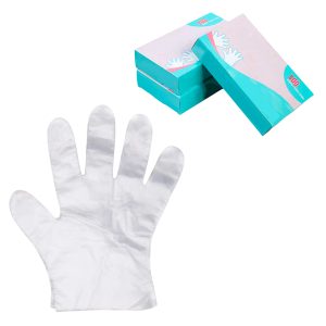 A ultra thick disposable PE glove made of 100% brand new material and packaged in paper box with 500 pieces.