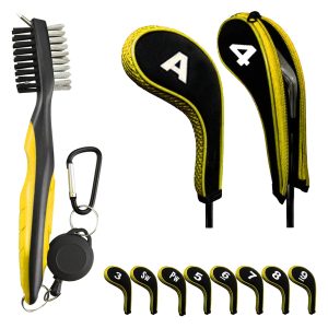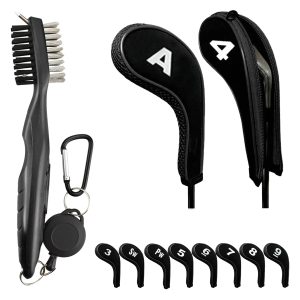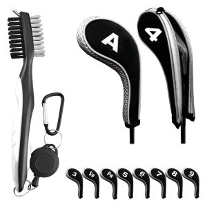 The set involves ten golf zipper iron cover and a golf club cleaning brush.