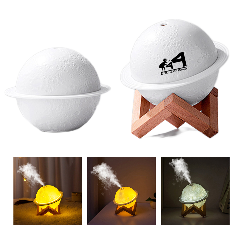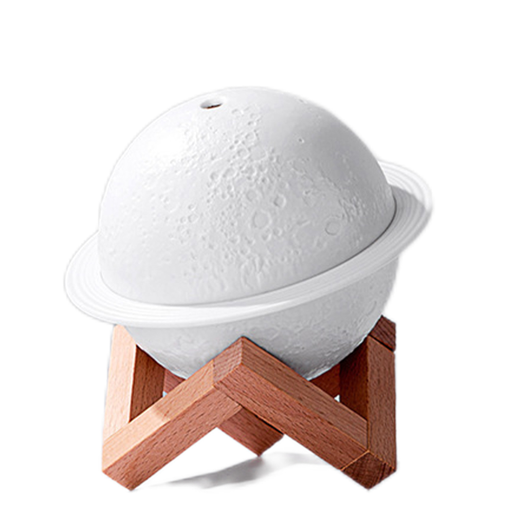 Planet shape humidifier is made of ABS, PP, PC, silicone and electronic components. The base has a non-slip silicone ring design. It has two levels of adjustable spray and three light modes. Built-in 2000mAh battery, can be used for 8 hours when fully charged. The surface is similar to that of the moon.