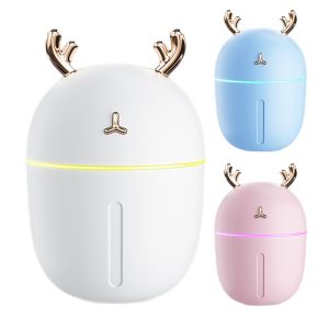 Household humidifiers are made of ABS, PP and electronic components. Two levels of fog volume can be adjusted. Comes with blue LED night light. The water tank capacity is 300 ml. It has dumping water leakage protection and automatic power-off function. The USB interface can be connected to a small fan, a night light and a power bank.