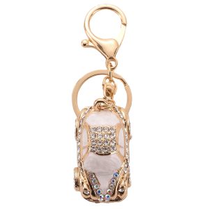 This Beetle Keychain Charm is made of alloy, beetle car is also encrusted with rhinestones, designed with an elastic charm and a ring. Can be used as a bag charm, keychain and sweater chain.