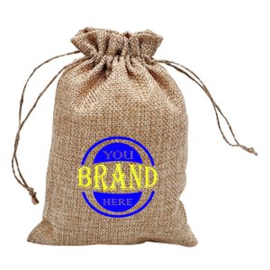 It’s made of natural jute with 370gsm. Drawstring design is applied to prevent items from falling and keep items clean. It’s suitable for storing candy and coffee bean. Custom made designs are acceptable.