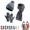 This acrylic three-piece set includes scarf, gloves and hat. The lining of hat and gloves is fluffy. One size fits most adults. It’s suitable for any occasions such as winter outdoor sports and daily use. It’s also a perfect gift for your family, relatives and friends. The touch screen fingertip design has high sensitivity, making it easy to answer calls or play on your mobile phones in winter.