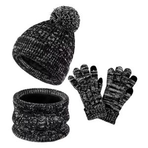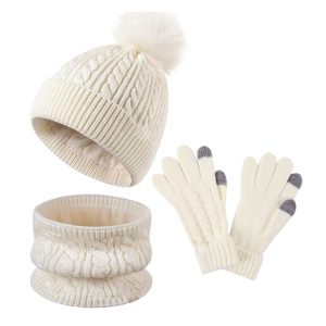 This acrylic kids three-piece set includes scarf, gloves and hat. The lining of hat and scarf is fluffy. Head circumference of the hat is around 50-54cm. It’s suitable for any occasions such as winter outdoor sports and daily use. It’s also a perfect gift for your family, relatives and friends. The touch screen fingertip design has high sensitivity, making it easy to play mobile games in winter.