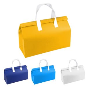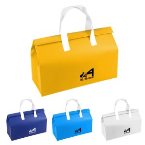 This bags are made from non-woven polypropylene. Spacious enough to fit a large amount of grocery items while shopping at the grocery store, carrying multiple orders when delivering food, or taking plenty of food for picnics, camping, catering, beach days, or parties.