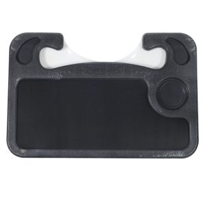 The car table board is made of ABS. The handle is ergonomically designed and can be tightened with two fingers. Just hang the dining table on the steering wheel, and there is an area for snacks, mobile phones and drinks in the front. The reverse side is the computer area and the pen area. Fully suspended structure, no support at the bottom of the desktop.
