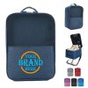 The shoe bag is made of oxford fabric and is capable of storing shoes up to size 11, including canvas shoes, leather shoes, or slippers. It is designed with a convenient hand rope for easy carrying.
