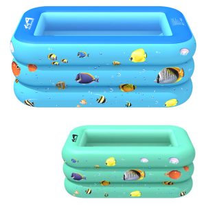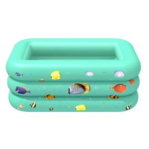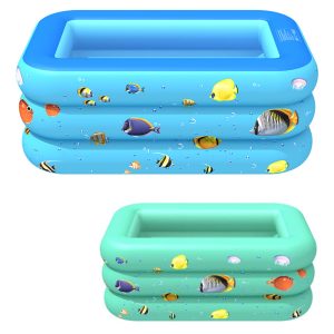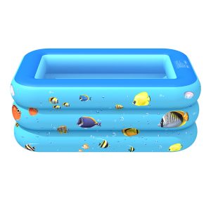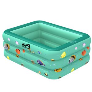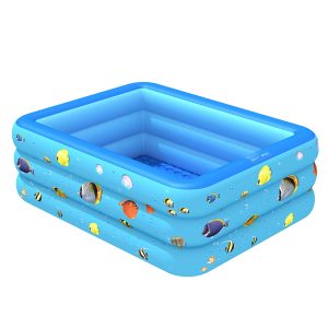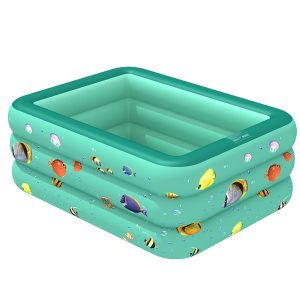 The outdoor inflatable swimming pool is made of PVC with an inflatable bubble bottom. The external side is designed with the pattern of marine animals.