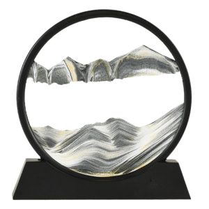 This painting is made of PP and glass. The inside oil and sand color could be changed as requested. A syringe was included for easy adjusting the air, water and sand inside. The beautiful scenery when it works makes it a sweet gift or a decorating part in the room.