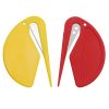 This small plastic letter opener is sharp, practical and available in a variety of colors.