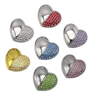 The heart shaped crystal necklace USB flash driver is made of metal and crystal with capacity of 8GB, the USB interface is 2. 0. The speed is 8 to 10 MB/S writing, 12 to 18 MB/S read. Available with 1GB, 2GB, 4GB, 16GB, 32GB and USB 3. 0 interface. Each USB flash driver is packaged in plastic opp bag, but with gift box packaging options in other price.